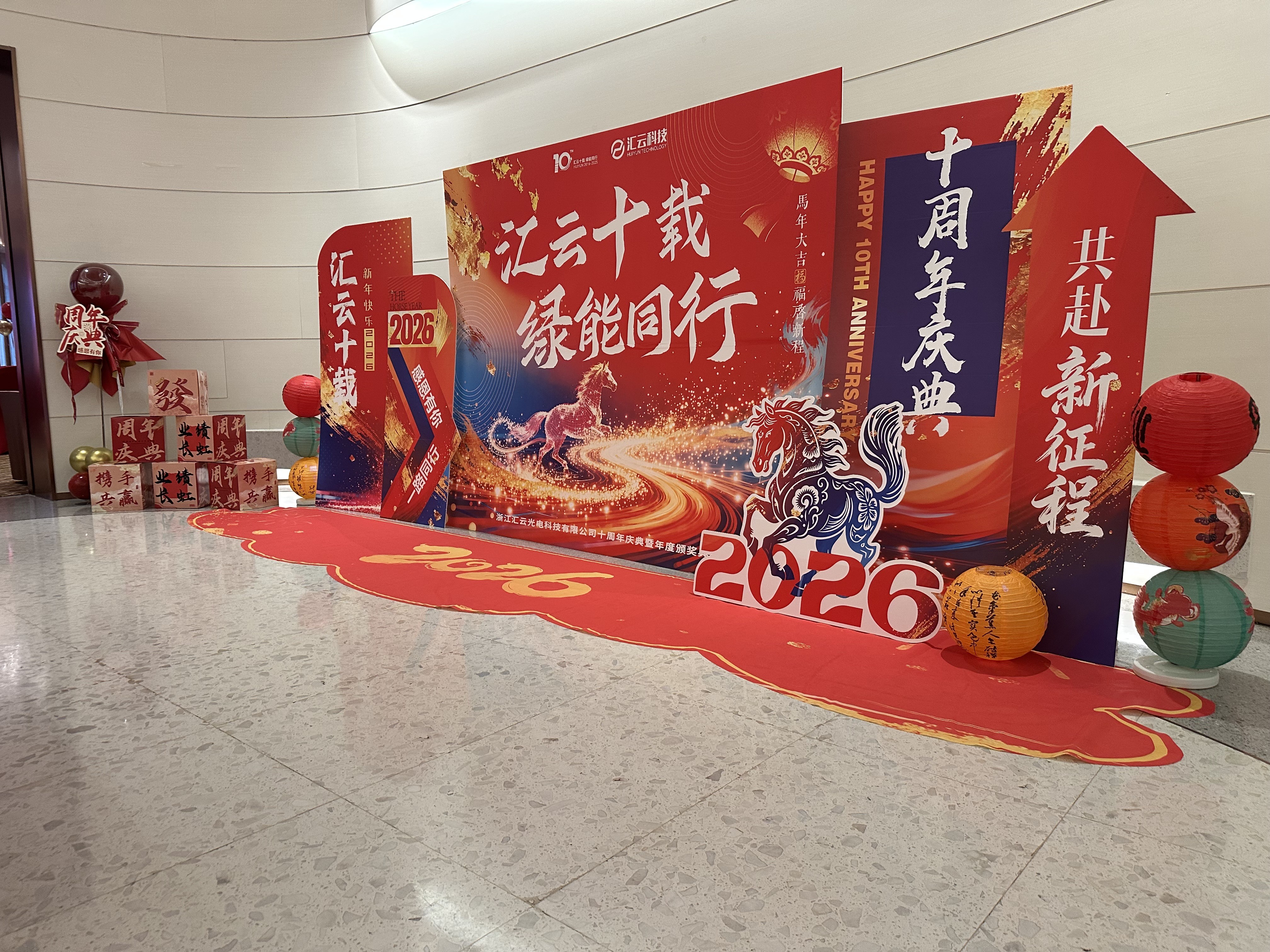 2026年1月30日,浙江汇云光电科技有限公司以“汇云十载 绿能同行”为主题的十周年庆典年会,在乐清天豪君澜大酒店圆满举办